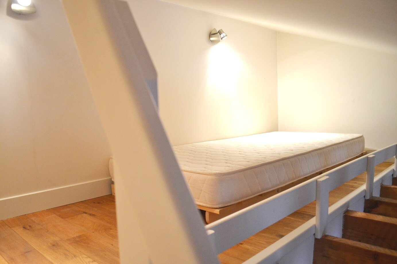 Superbe studio dans impasse privée rue du faubourg Saint Honore (Square du Roule), Metro Ternes. Situé au coeur du Triangle d'or, immeuble haussmannien d'excellent standing. 25m2 au sol, 20m2 en carrez + mezzanine. L'appartement a entièrement été rénové avec des prestations de grandes qualités. La pièce principale présente de beaux volumes avec 3 grandes fenêtres en double vitrage. Les placards sont sur mesures et aménagés sous la sous-pente. Le parquet est en chêne massif et le plafond en poutres apparentes. Un escalier mène à une mezzanine aménagée. La cuisine américaine est complètement équipée (micro-onde, hotte, plaques, frigo, lave-linge). La salle d'eau a une grande douche d'angle, une vasque ainsi que des WC suspendus. La porte d'entrée est blindée et le chauffage ainsi que l'eau chaude sont individuels électriques. Situé au 6ème étage avec ascenseur. L'immeuble possède un digicode et un visiophone, un gardien, ainsi qu'un local vélo ou poussette.