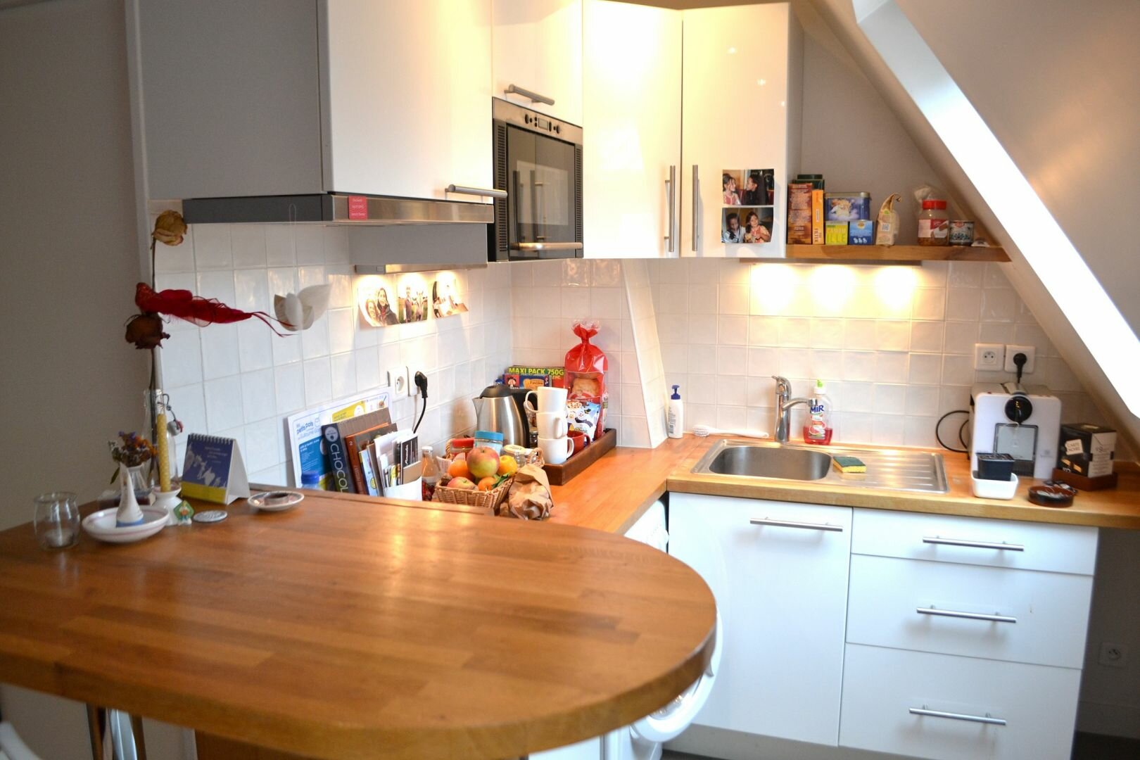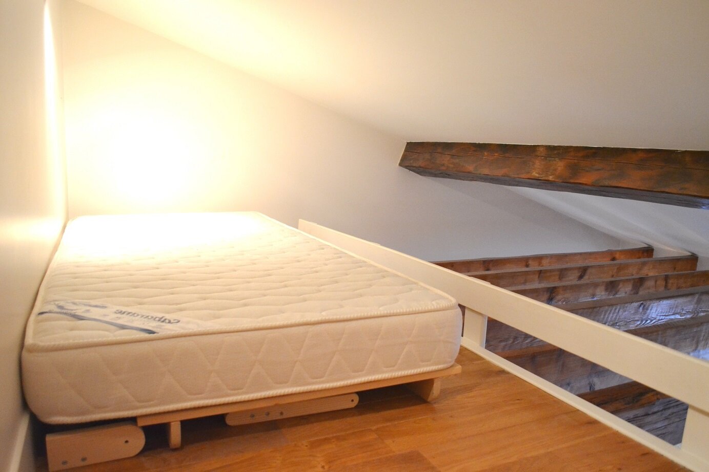 Superbe studio dans impasse privée rue du faubourg Saint Honore (Square du Roule), Metro Ternes. Situé au coeur du Triangle d'or, immeuble haussmannien d'excellent standing. 25m2 au sol, 20m2 en carrez + mezzanine. L'appartement a entièrement été rénové avec des prestations de grandes qualités. La pièce principale présente de beaux volumes avec 3 grandes fenêtres en double vitrage. Les placards sont sur mesures et aménagés sous la sous-pente. Le parquet est en chêne massif et le plafond en poutres apparentes. Un escalier mène à une mezzanine aménagée. La cuisine américaine est complètement équipée (micro-onde, hotte, plaques, frigo, lave-linge). La salle d'eau a une grande douche d'angle, une vasque ainsi que des WC suspendus. La porte d'entrée est blindée et le chauffage ainsi que l'eau chaude sont individuels électriques. Situé au 6ème étage avec ascenseur. L'immeuble possède un digicode et un visiophone, un gardien, ainsi qu'un local vélo ou poussette.