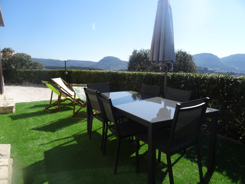 Plein sud ,vue mer et cap Canaille. Cuisine équipée, salle de bain avec baignoire et douche + salle d'eau avec chambre indépendante. Trois chambres dont deux avec lits à deux places et la troisième est séparée du logement principal et dispose de deux lits à une place(90) ,nombreux rangements . Disponible de suite !